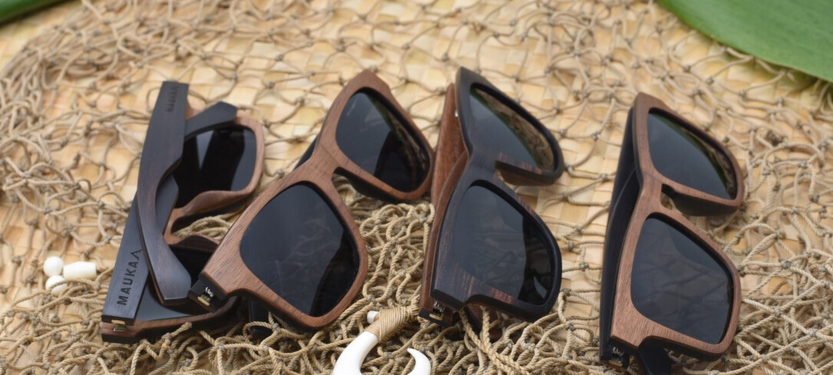 Island designed styles hand crafted from sustainable cellulose acetate and natural wood layers.